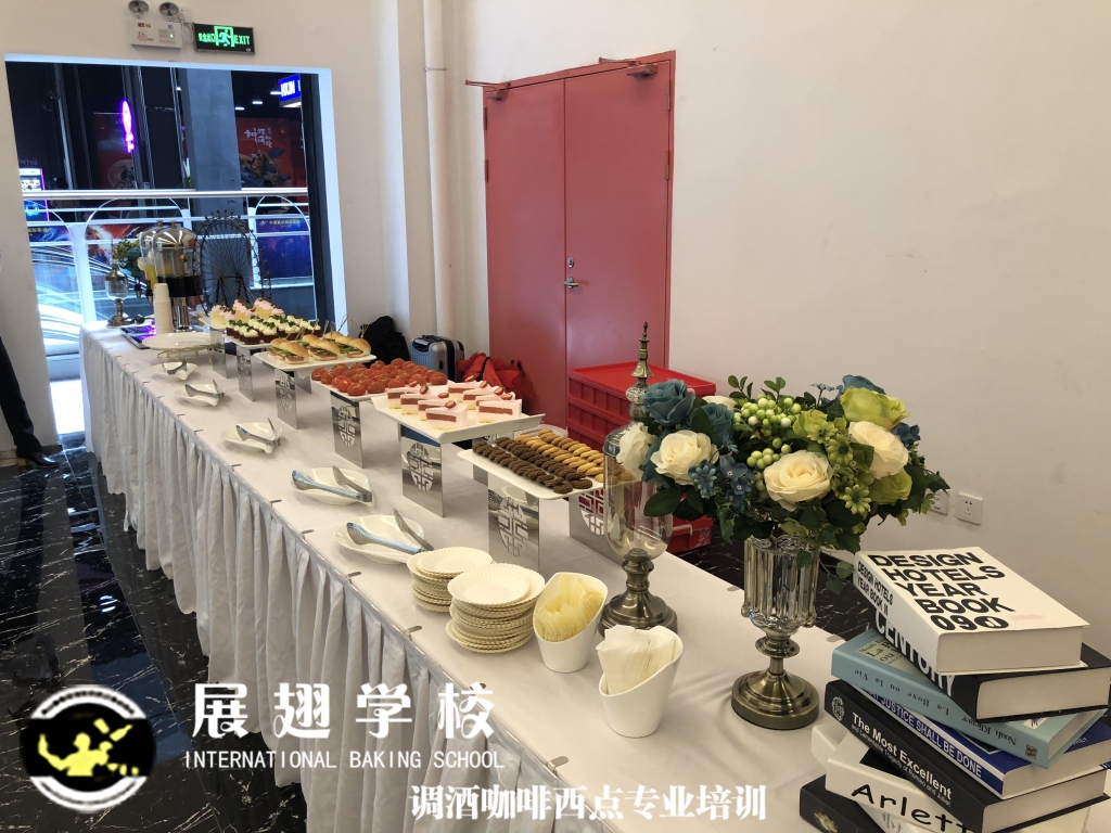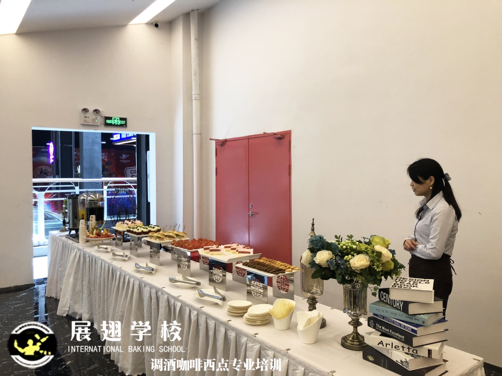 東莞華夏嘉納國際影院盛大開業,佛山展翅調酒咖啡西點培訓學校的學員們為現場提供了精致美味的西點茶歇供大家享用,此次外出實踐活動,這樣可以檢驗學員這段時間以來的學習成果,還能讓學員新自體驗下西點服務行業的工作,還能提升自己的技術和能力。