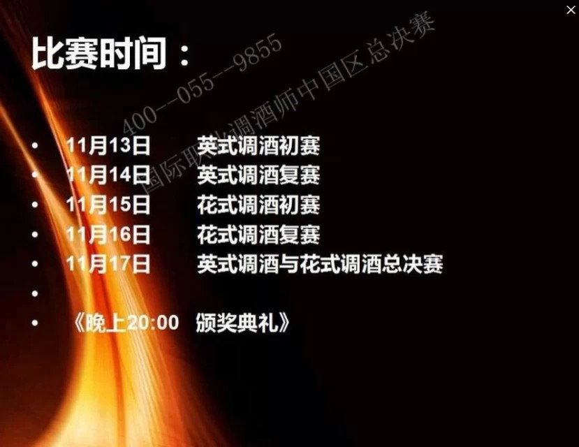 《2014國際職業調酒師中國區總決賽》《慶祝中法建交五十周年首屆國際美酒美食嘉年華》,2015年 米蘭世博會組委會親臨現場,歐美調酒冠軍親臨現場。國際美酒美食嘉年華組委會、國際職業調酒師中國區總決賽組委會、國際職業認證管理協會主辦!趕緊來報名吧!http://url.cn/QVcLxU