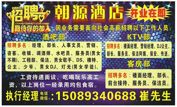 河源酒吧,需要調酒師和吧員若名