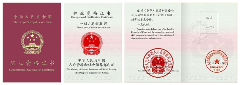 國家職業(yè)資格一級(高級技師樣板證書)