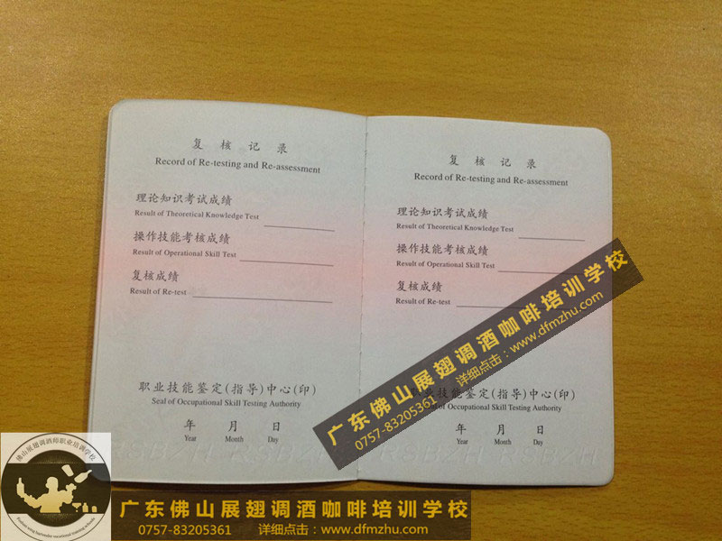 以下所有證書,都是佛山展翅調(diào)酒咖啡西點培訓(xùn)學(xué)校畢業(yè)學(xué)生,考取的調(diào)酒師、咖啡師、西點師職業(yè)資格證書,為了防止盜圖,全部加了水印。